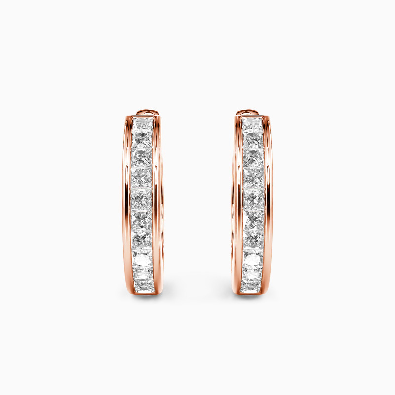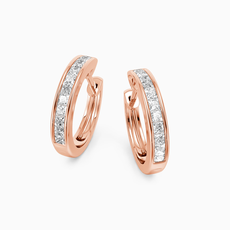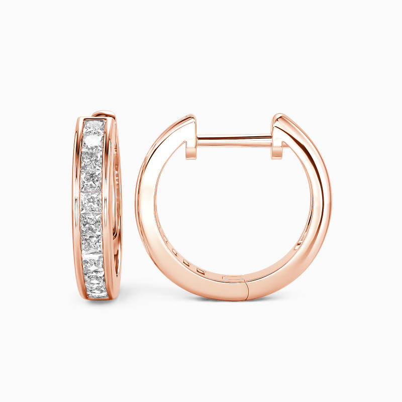 Embedded with several princess-cut stones tidily in a channel half along the buffed hoop, these earrings perfectly interpret modern fashion with shimmery radiance. Classic accessories fit every look in your wardrobe.