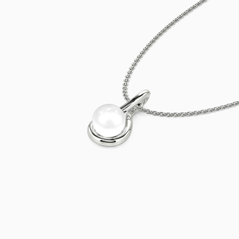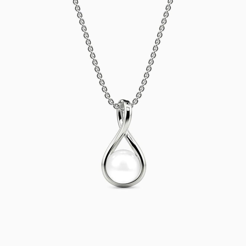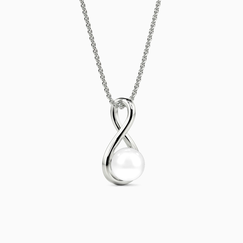 This pendant necklace features a highly polished infinity knot, symbolizing endless love and connection. Cradled within this intricate design is a lustrous pearl, adding a touch of classic sophistication. The unique style effortlessly combines timeless elegance with modern design, making it a perfect piece for any occasion.