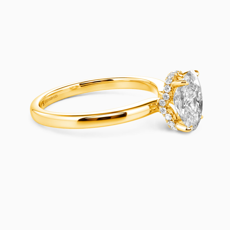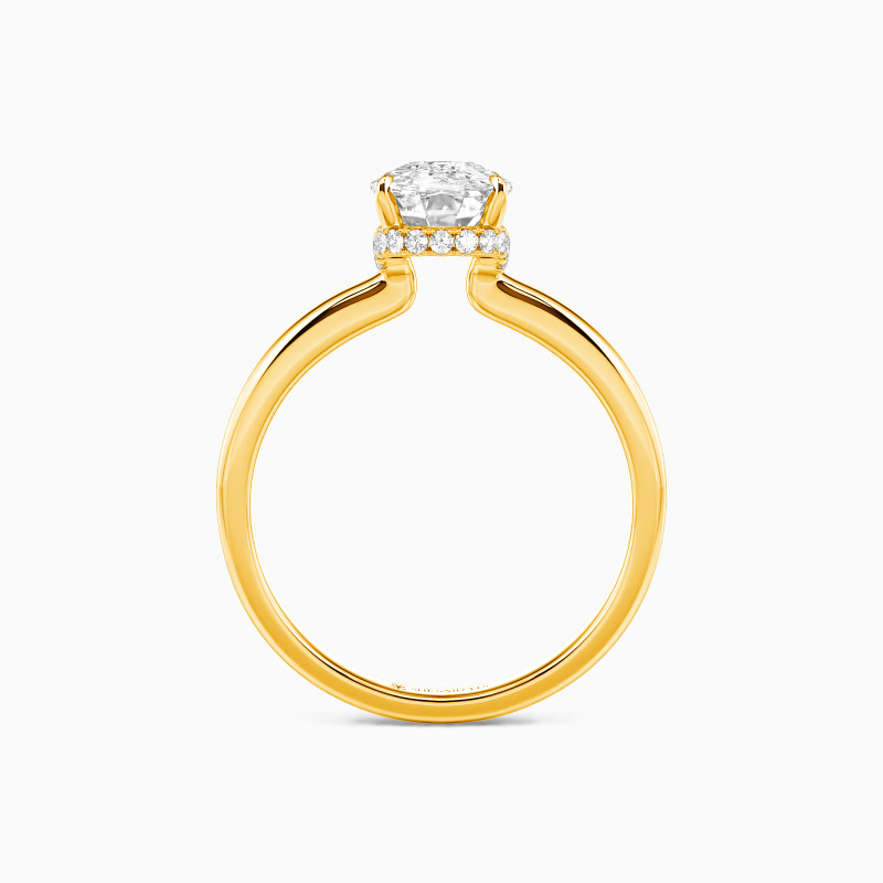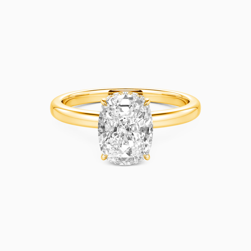 Captivating brilliance meets contemporary design in this exquisite engagement ring. The striking centerpiece, an elongated-cushion-shaped stone, commands attention with its unique cut. Four sleek prongs secure the gem atop a lustrous band, while delicate accent stones adorn the setting's profile, adding a subtle sparkle. This ring artfully balances timeless elegance with modern flair, creating a sophisticated symbol of enduring love and commitment.