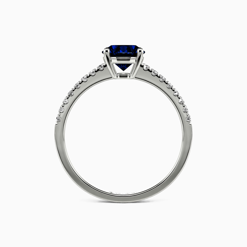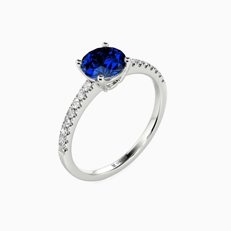 Simple and classic. A graceful engagement ring featuring a glistening Round stone in the setting with a gold contrast around the main stone. Additional accents line the gold band. This one pair nicely with a multitude of our wedding bands. Promise to love her with this ring as long as the stars twinkle in the sky, as long as angels are there up high.