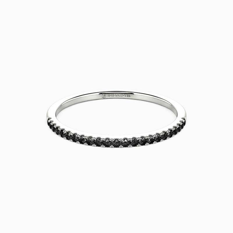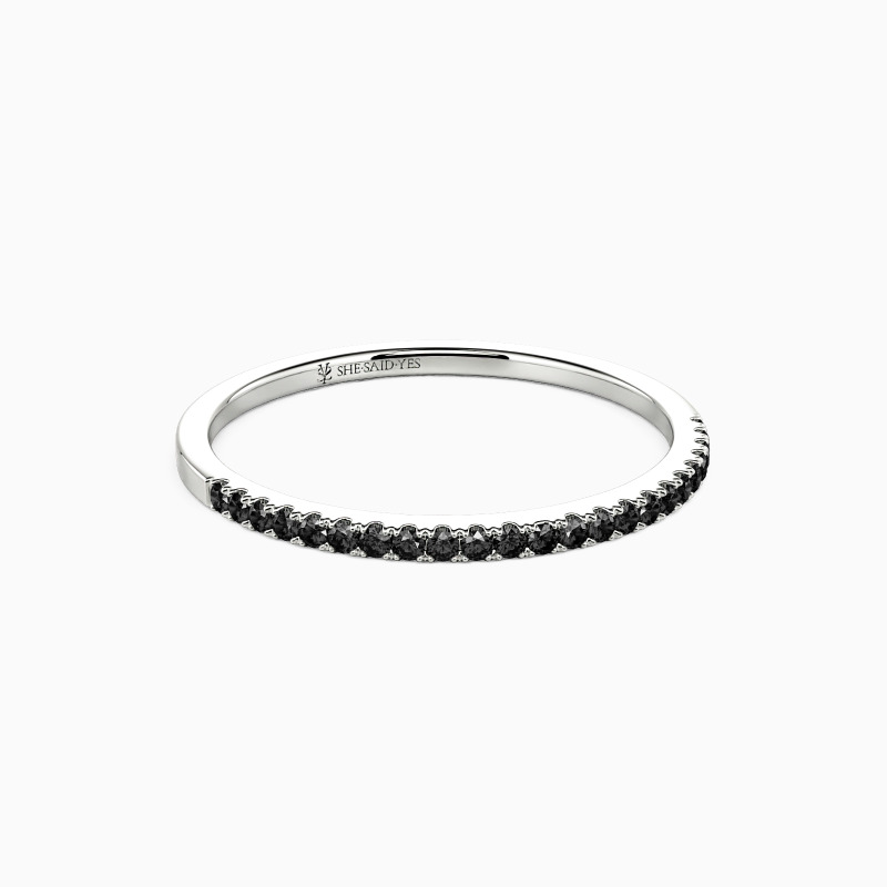 Gleaming accents and polished shank combine in a simple design you can wear every day. You could never go wrong with such a classic half eternity wedding band. It portrays your elegance effortlessly in its shining beauty. Stacking with your engagement ring or wearing it solo is both an ideal choice; this timeless design is a dazzling symbol of your love.