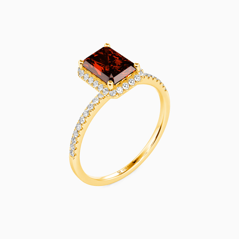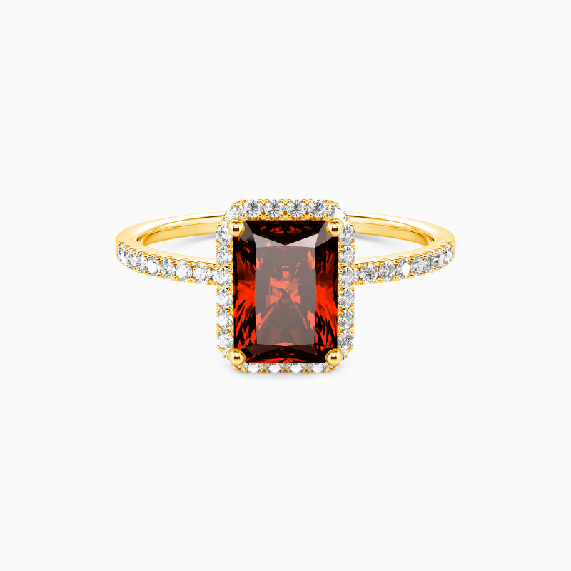 On the most important day, surprise her with this halo engagement ring. This exquisite style sets a brilliant radiant-cut stone in the center, surrounded by a shimmering halo frame. Set along the shank is a well-arranged row of paved accents. The excellent luster reflects all the glamour this ring can take to you. Your vision of love has been restarted since the day you met her.