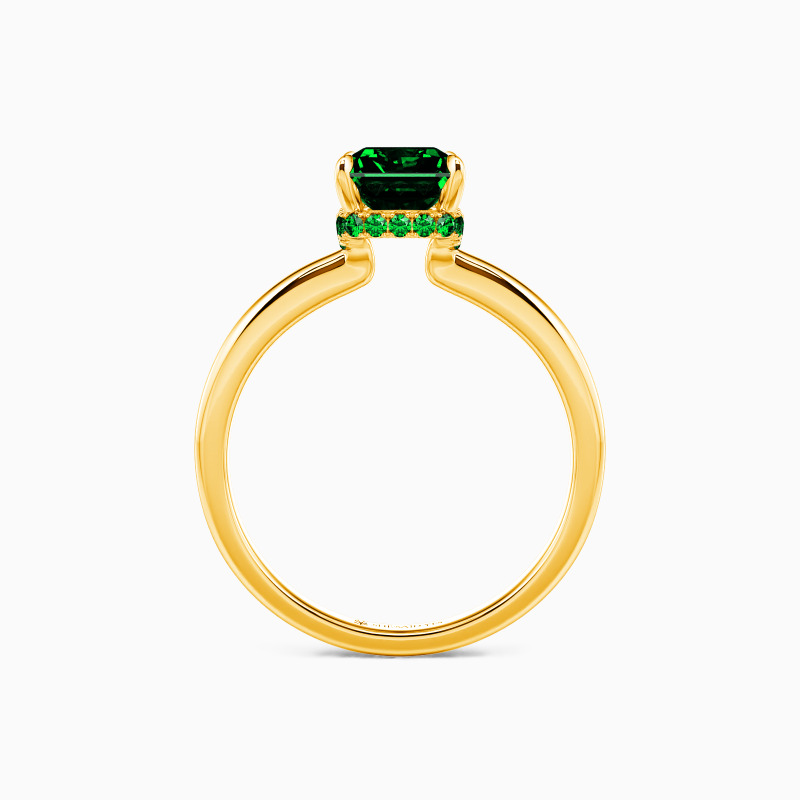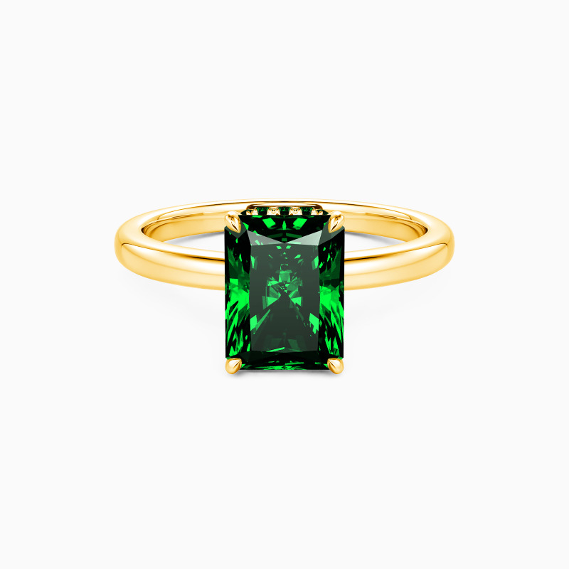 Exquisite and modern, this engagement ring showcases a dazzling radiant-cut centerpiece, its brilliance amplified by a delicate hidden halo. The sleek band gracefully rises to embrace the stone, creating an elegant silhouette. With its clean lines and subtle sparkle, this ring embodies contemporary romance, making it a timeless symbol of your love and commitment.