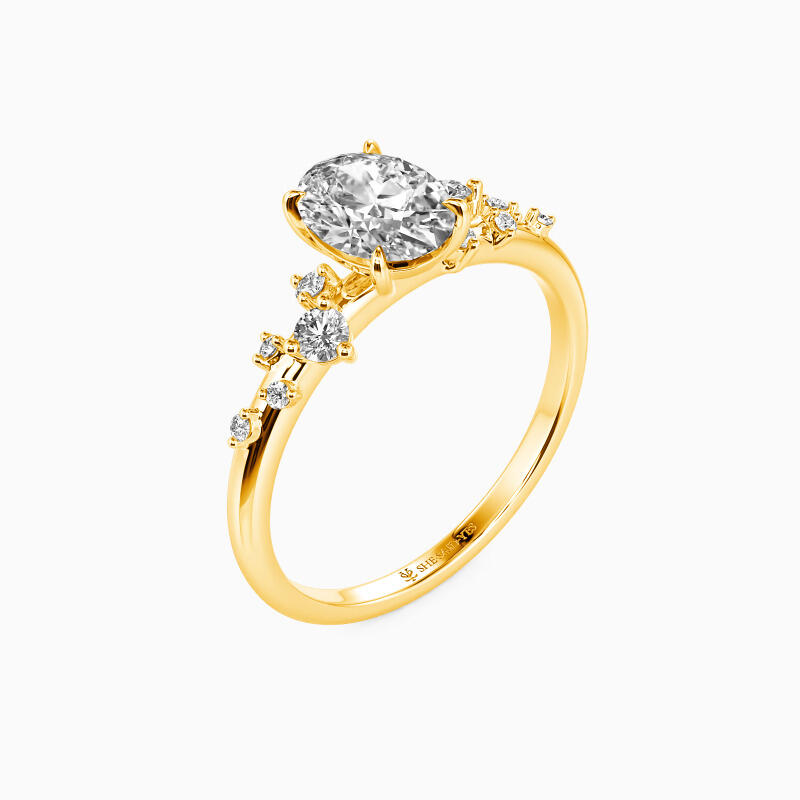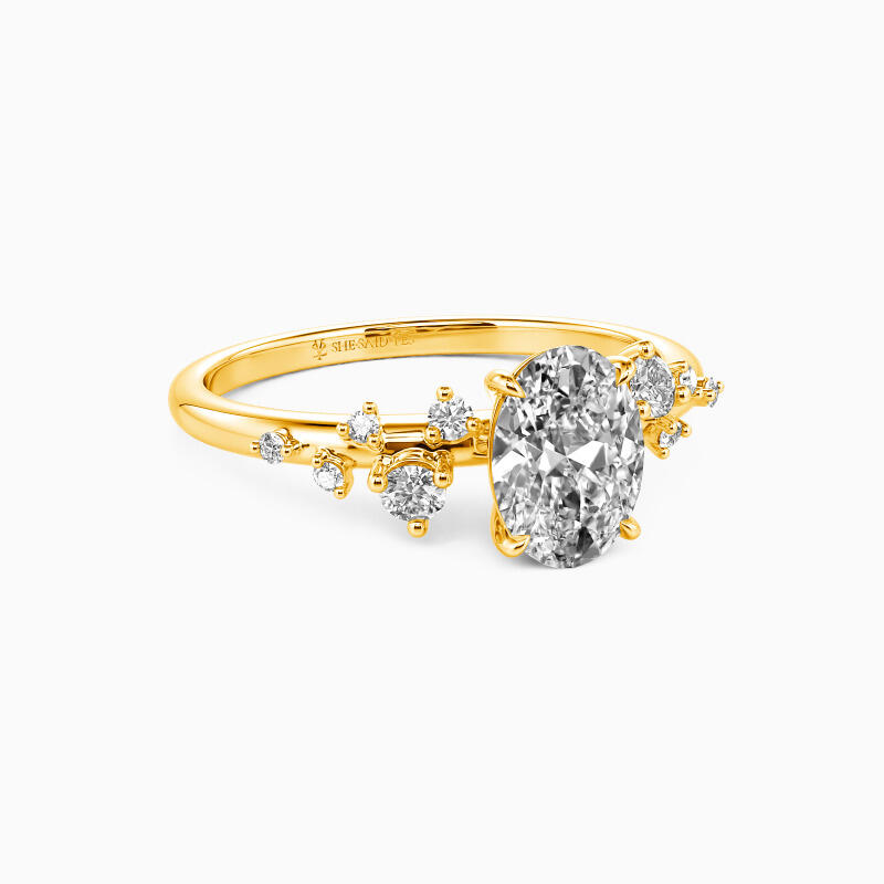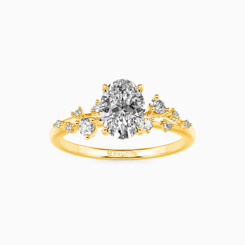 "Close to You" Oval Cut Cluster Side Stone Engagement Ring