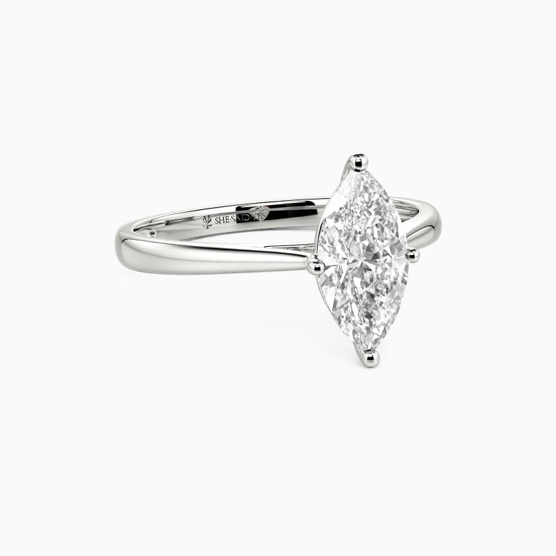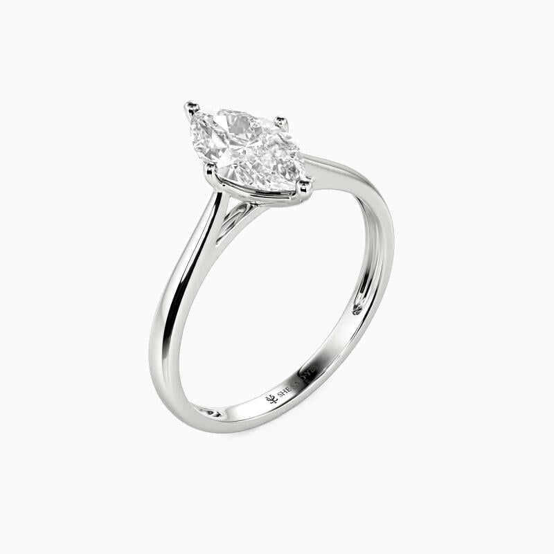The four-prong setting gives a marquise-cut stone a classic look and allows more light to contact the stone, enhancing its brilliance. Give this ring to your beloved one to promise to be with her forever.