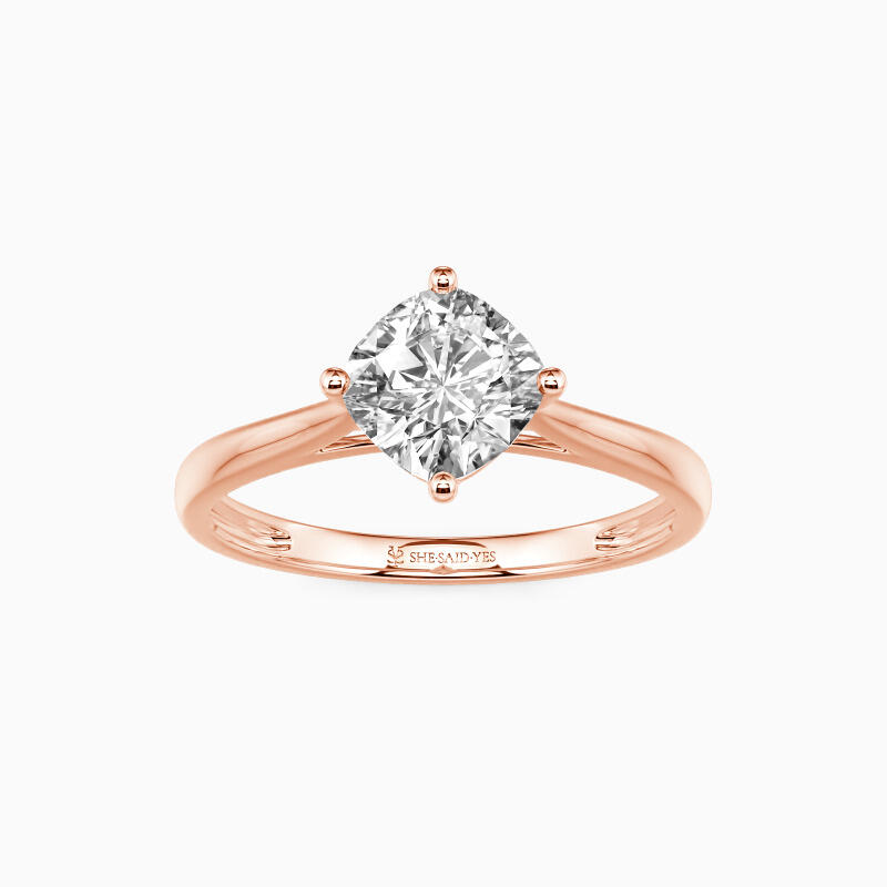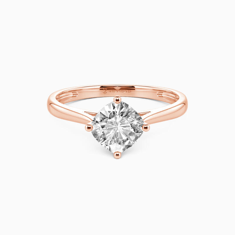 The four-prong setting gives a cushion-cut stone a fairly square look and allows more light to contact the stone, enhancing its brilliance. Give this ring to your beloved one to promise to be with her forever.