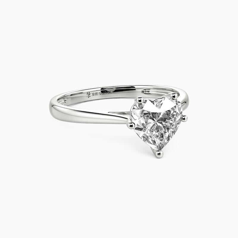 The setting gives a heart-cut stone a classic look and allows more light to contact the stone, enhancing its brilliance. Give this ring to your beloved one to promise to be with her forever.