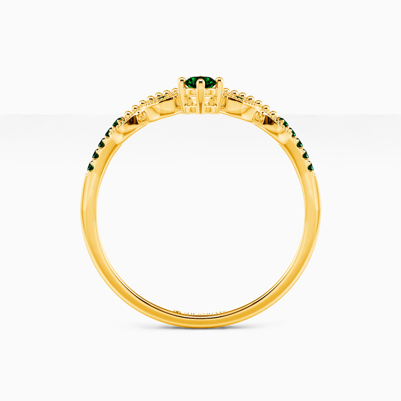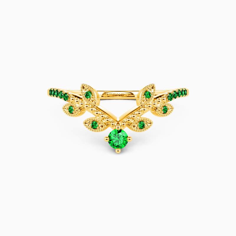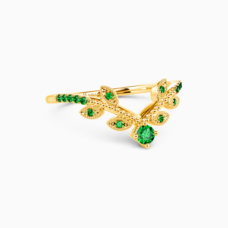 This modern band is a perfect way to add a touch of style and elegance to any ensemble. The leafy design runs along the shank reminding you to enjoy the natural joy in life. It sparkles with the twinkling round-cut stone and intricate milgrain borders. Stack or wear it solo, make a statement with this prominent masterpiece.