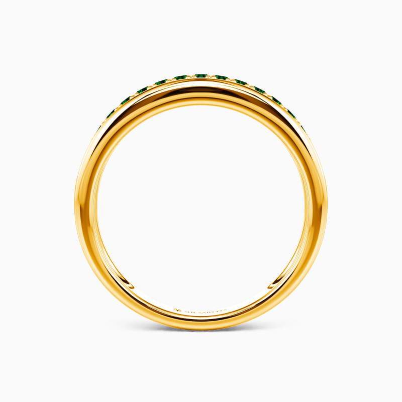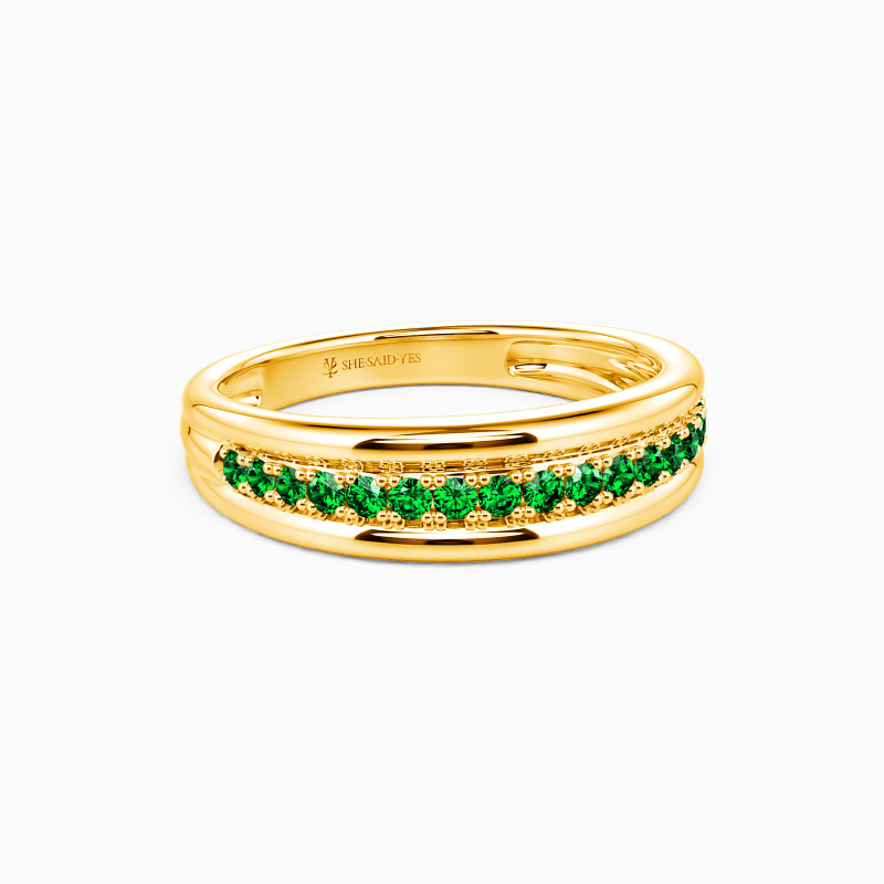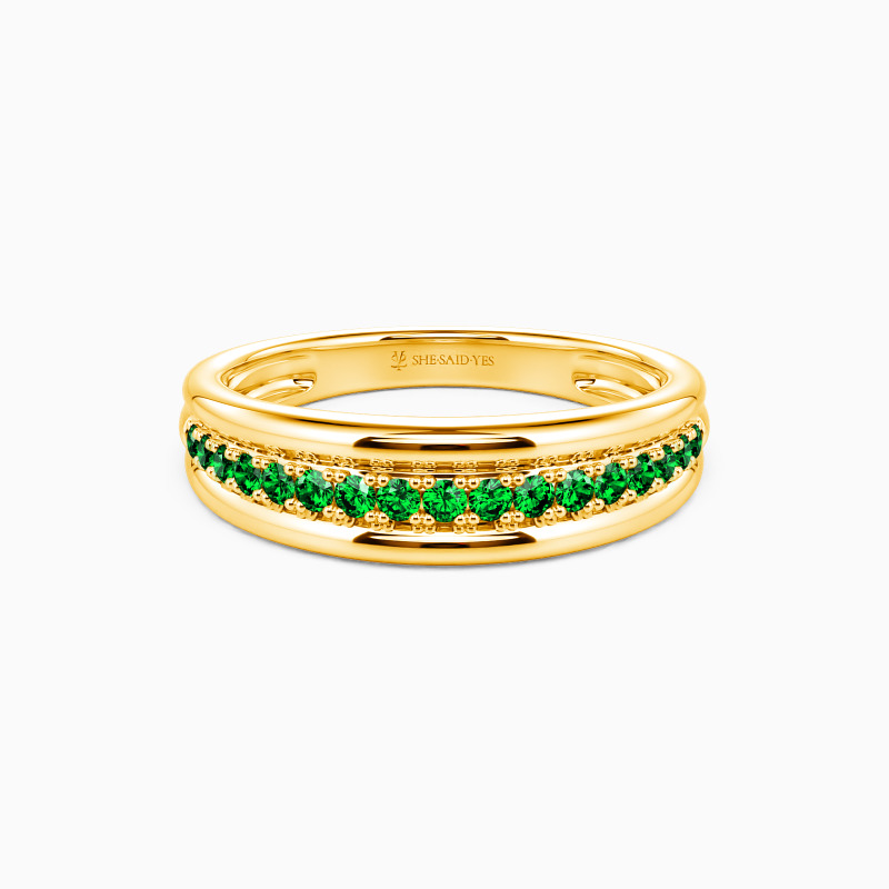 A distinguished wedding band he'll treasure. This style showcases a row of pavéd round-cut stones glistening across the center. And the polished borders complete the sparkling design. It is certain to be a perfect choice for the man you adore.