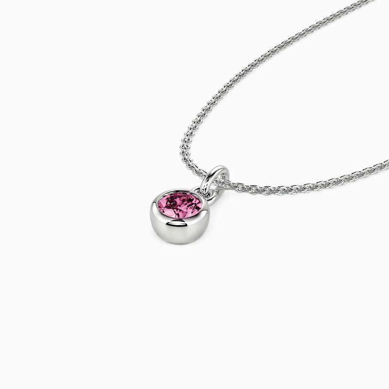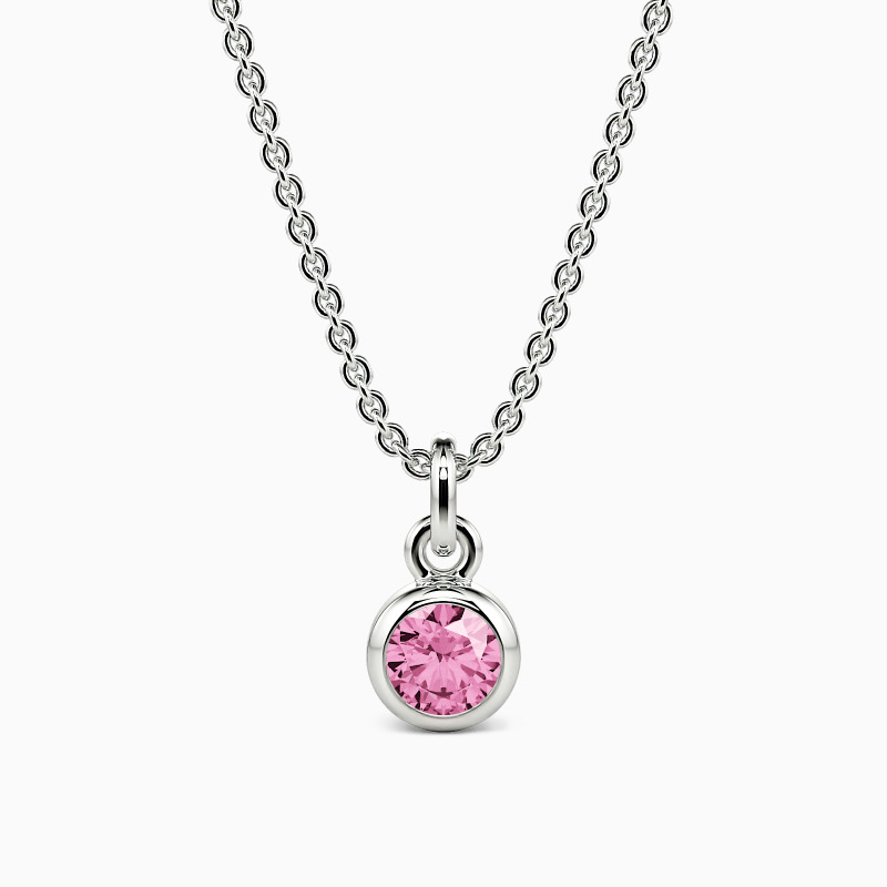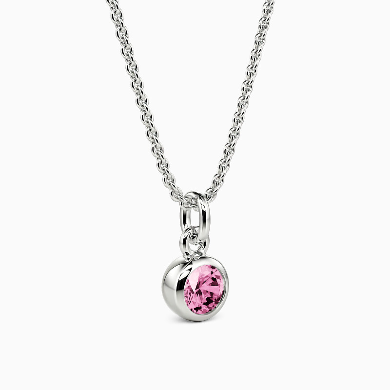 This solitaire necklace features a brilliant round-cut stone set in a highly polished bezel setting, adding dimension to the center stone with a chic appeal. Its timeless design permits it to match any casual or formal attire, and you can customize the stone you prefer.