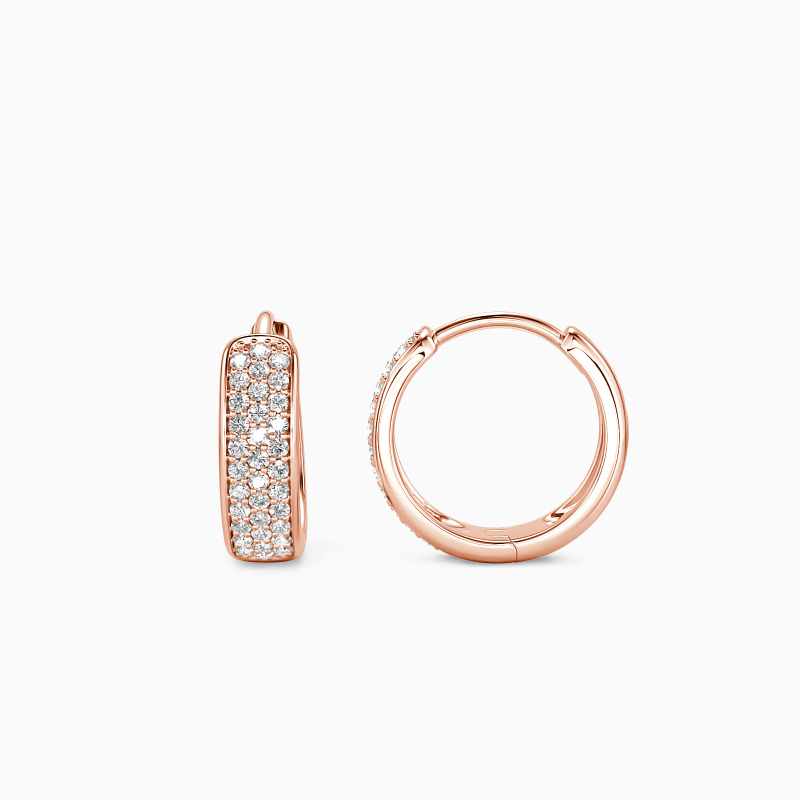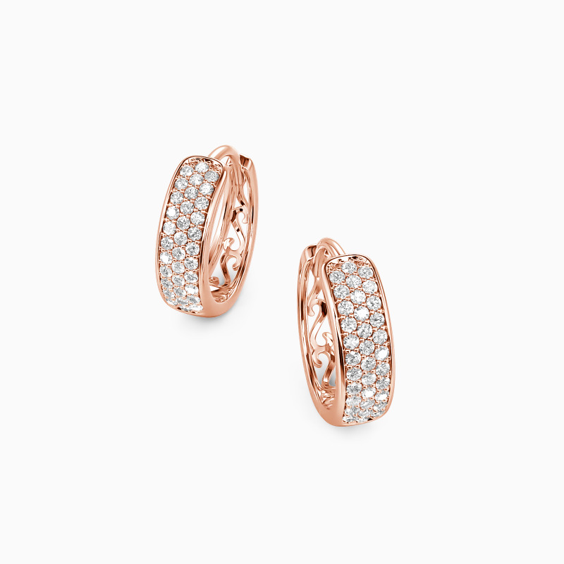 Add a touch of luxury to your ensembles, suitable for any occasion. Three rows of round-cut accents in a pavé setting shine with all their glistening glory. They adorn your ears in a simple yet sophisticated style and are truly mesmerizing.