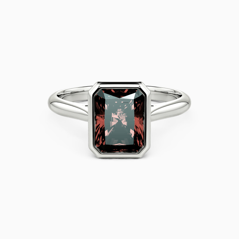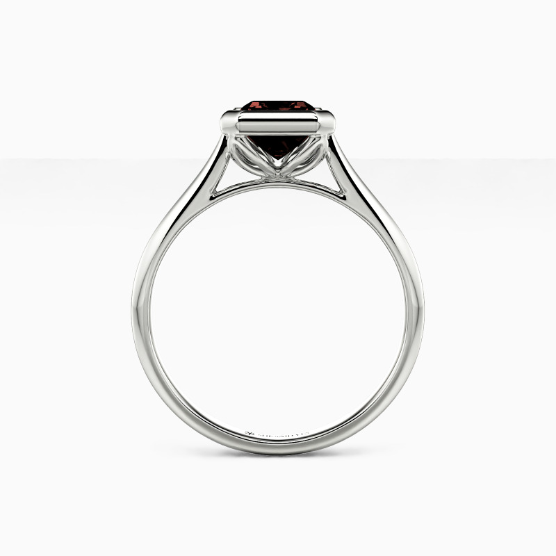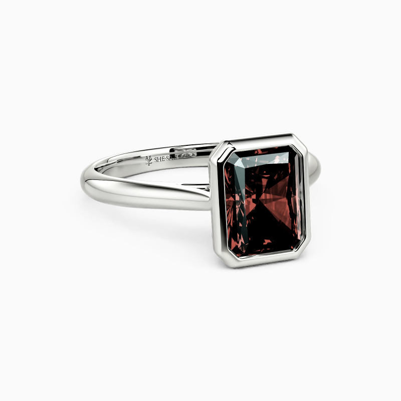 Designed with the ultimate minimalist aesthetic, SHE·SAID·YES provides you with a gorgeous solitaire engagement ring. Featuring a brilliant radiant-cut gem in a precious bezel, this piece shines stunningly from the center. A buffed shank in tapered style compliments its elegance and brings you a more delicate beauty.