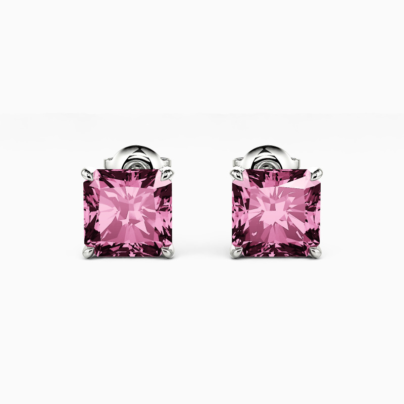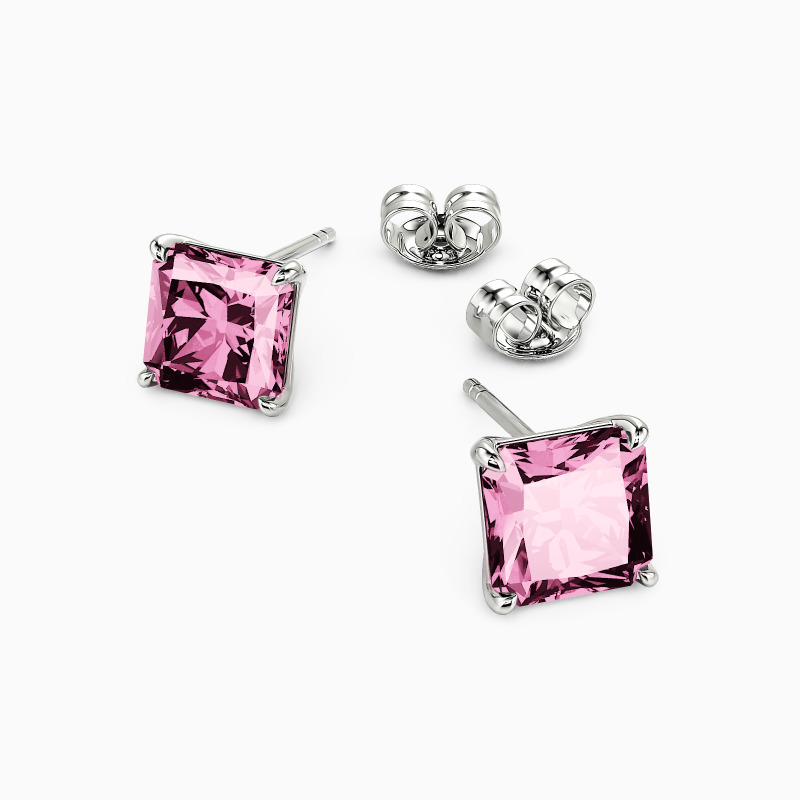 Endowed with a minimalist design, this glittering stud earring reflects a perfect radiance of gemstone. Crafted with a sparkling radiant-cut stone for each earring in delicate four prongs, it allows maximum light to emit naturally. Such a dainty daily piece is suitable for every look you want.