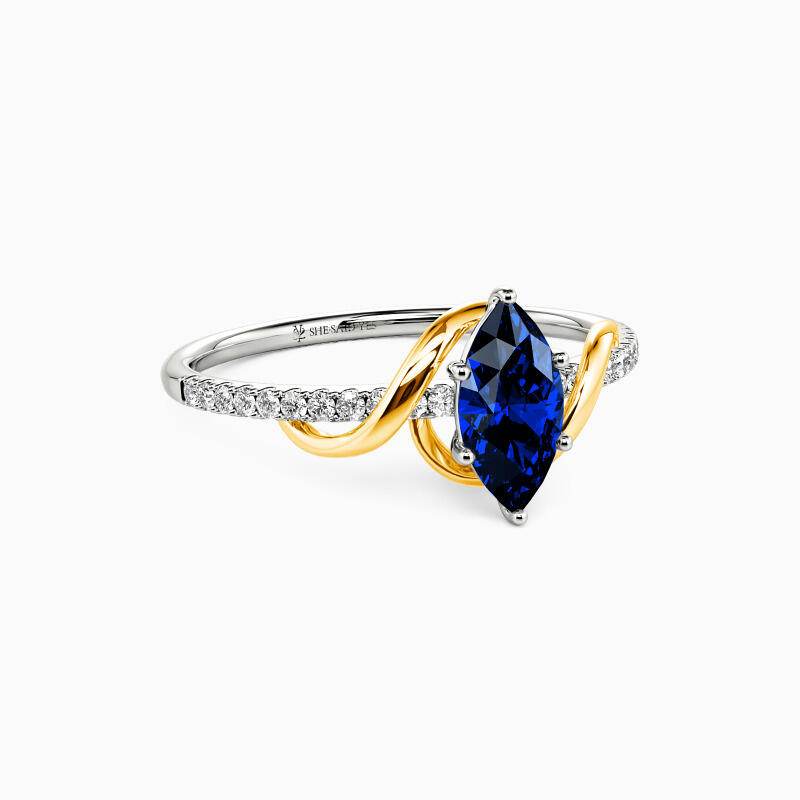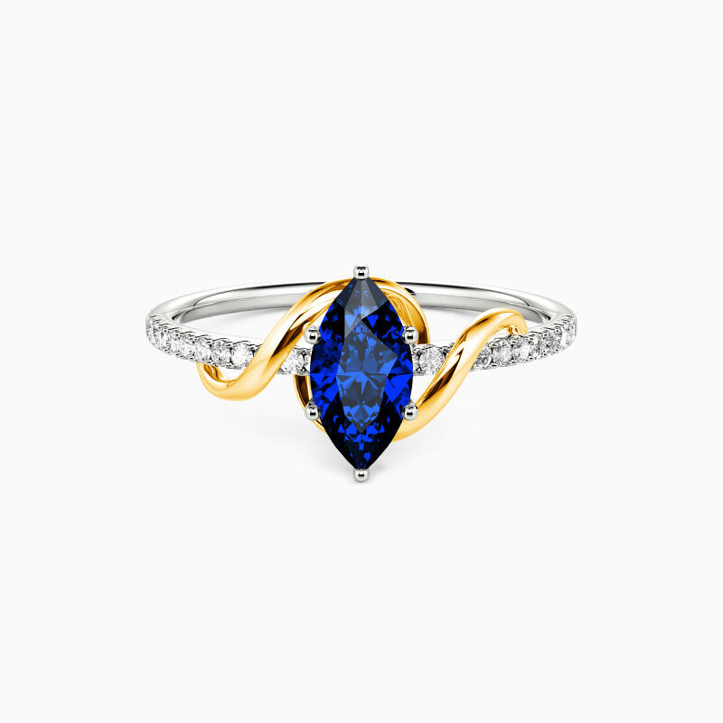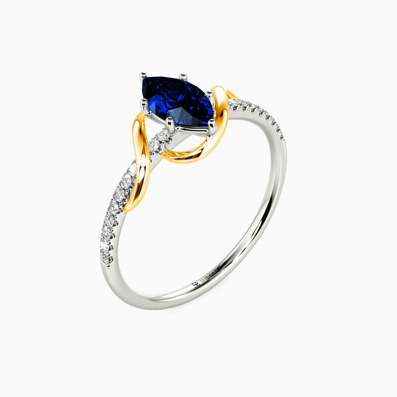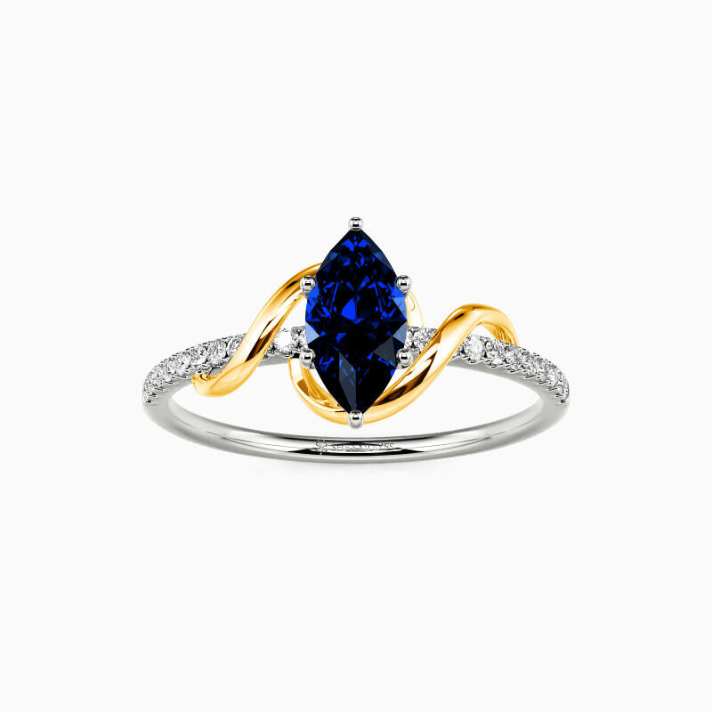 This side stone engagement ring dazzles you with a marvelous marquise-cut center stone held in a prong setting. Further embellishing the ring is an array of well-arranged glistening accents studded in a pavé setting on the twisted shank for a stylish appeal. Promise to love her for a lifetime with this ring will surely be an intelligent choice.