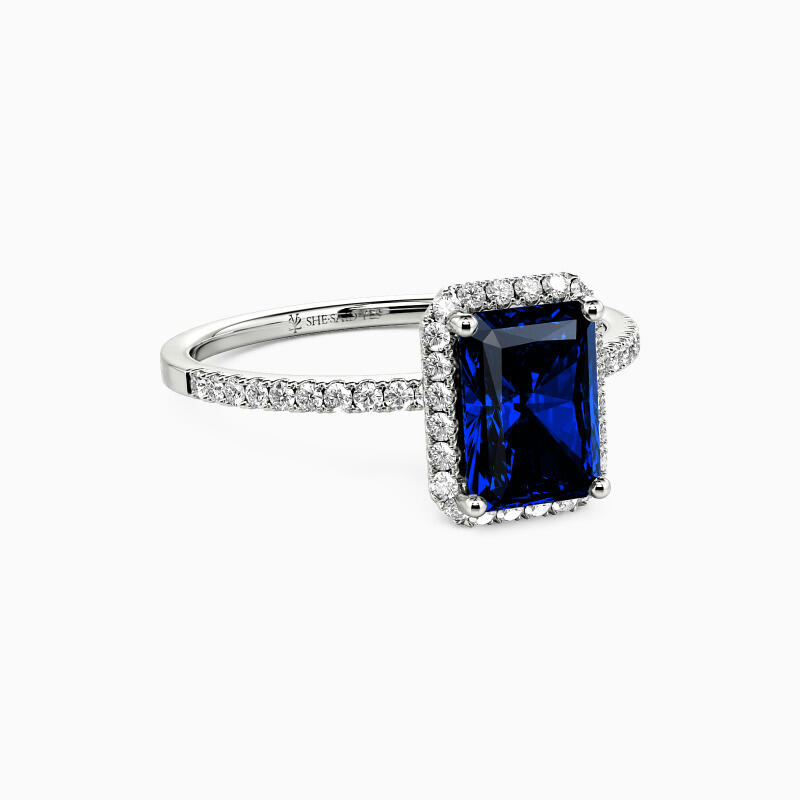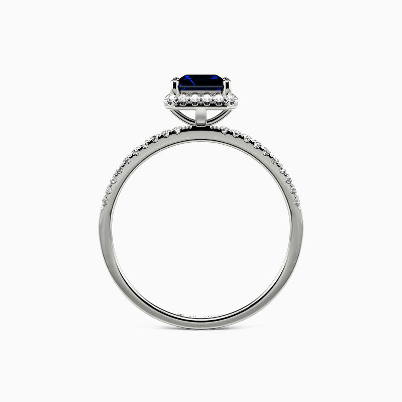 On the most important day, surprise her with this halo engagement ring. This exquisite style sets a brilliant radiant-cut stone in the center, surrounded by a shimmering halo frame. Set along the shank is a well-arranged row of paved accents. The excellent luster reflects all the glamour this ring can take to you. Your vision of love has been restarted since the day you met her.