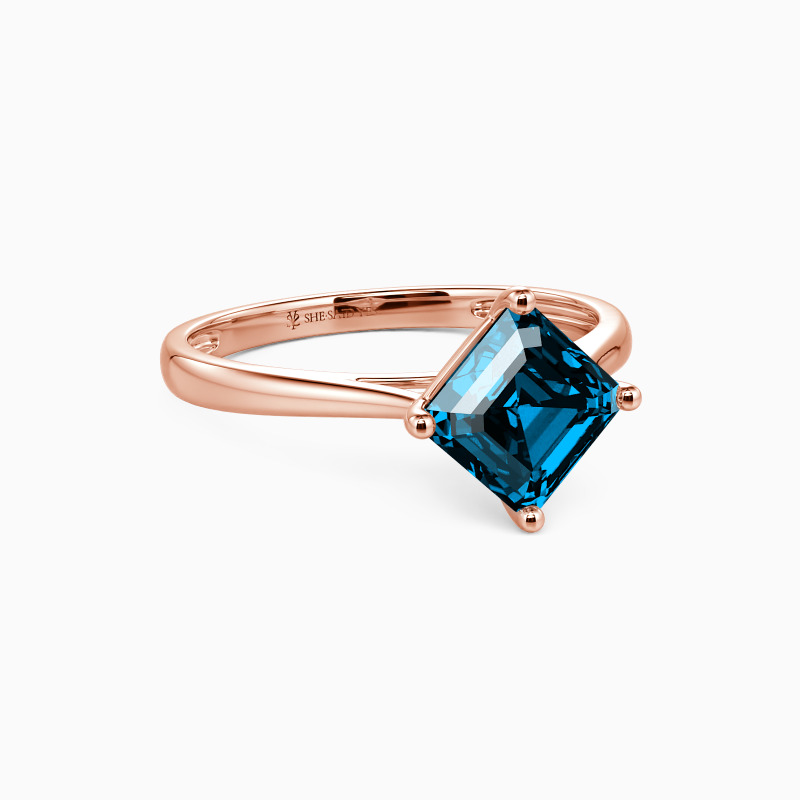 The four-prong setting gives an Asscher-cut stone a classic look and allows more light to contact the stone, enhancing its brilliance. Give this ring to your beloved one to promise to be with her forever.