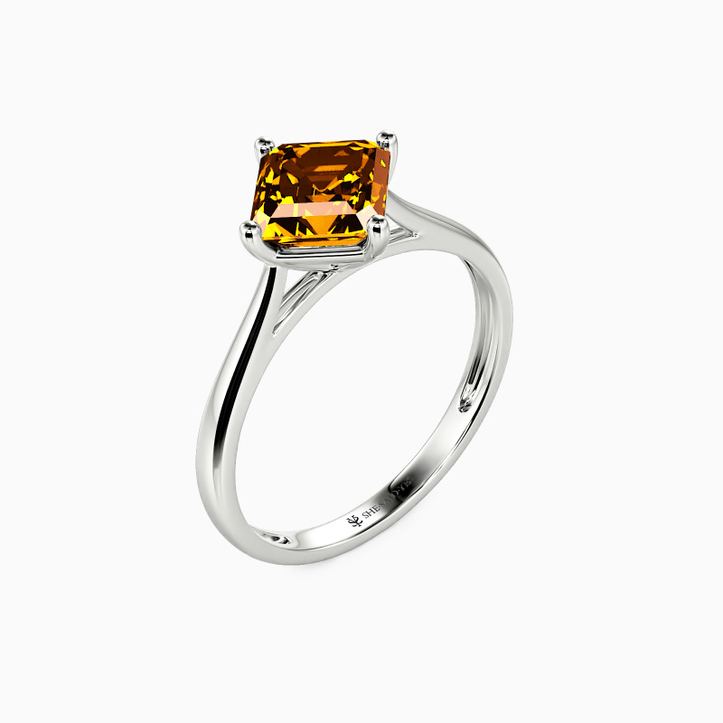 The four-prong setting gives an Asscher-cut stone a classic look and allows more light to contact the stone, enhancing its brilliance. Give this ring to your beloved one to promise to be with her forever.