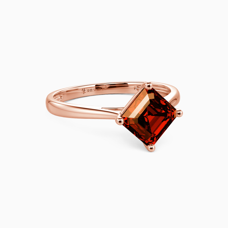 The four-prong setting gives an Asscher-cut stone a classic look and allows more light to contact the stone, enhancing its brilliance. Give this ring to your beloved one to promise to be with her forever.