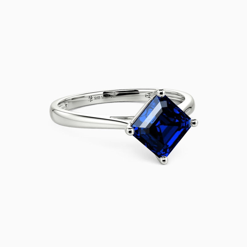 The four-prong setting gives an Asscher-cut stone a classic look and allows more light to contact the stone, enhancing its brilliance. Give this ring to your beloved one to promise to be with her forever.