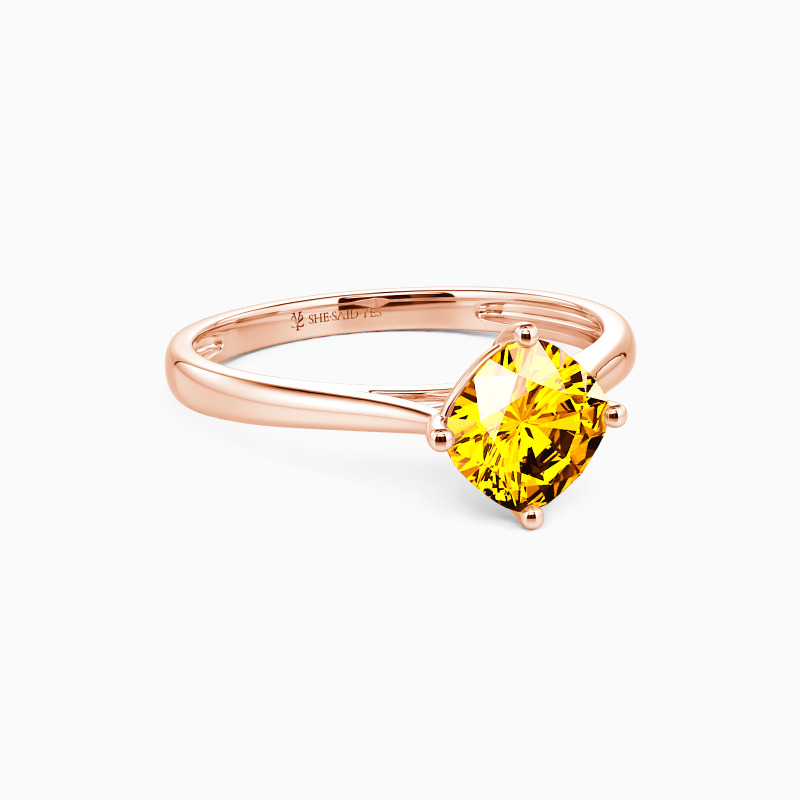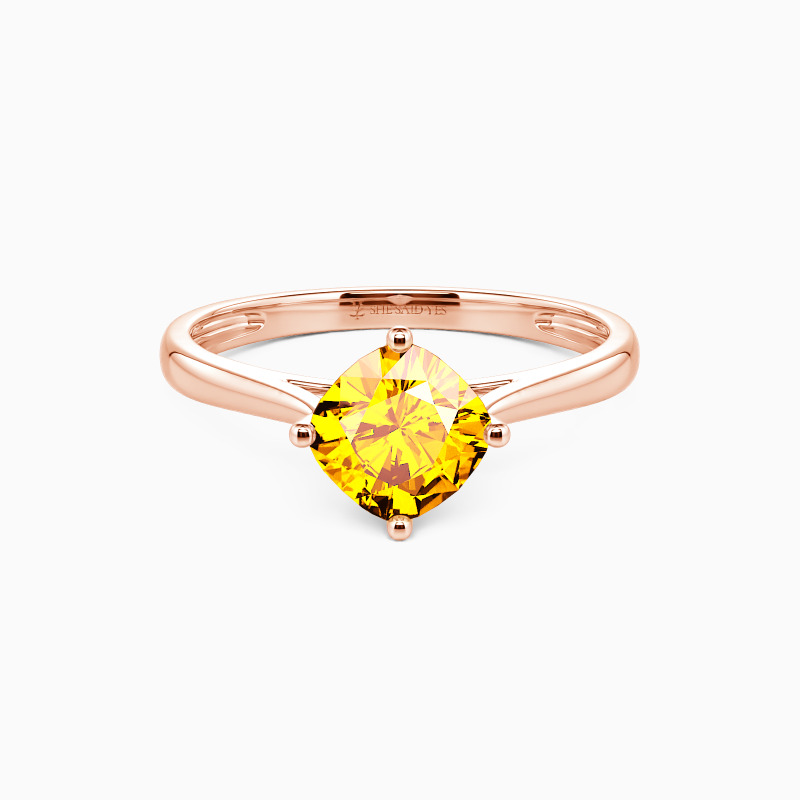 The four-prong setting gives a cushion-cut stone a fairly square look and allows more light to contact the stone, enhancing its brilliance. Give this ring to your beloved one to promise to be with her forever.
