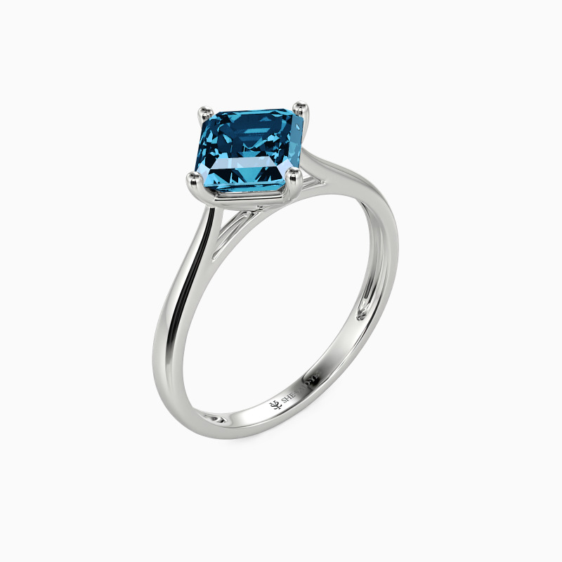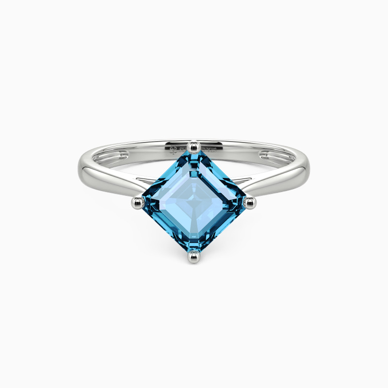The four-prong setting gives an Asscher-cut stone a classic look and allows more light to contact the stone, enhancing its brilliance. Give this ring to your beloved one to promise to be with her forever.