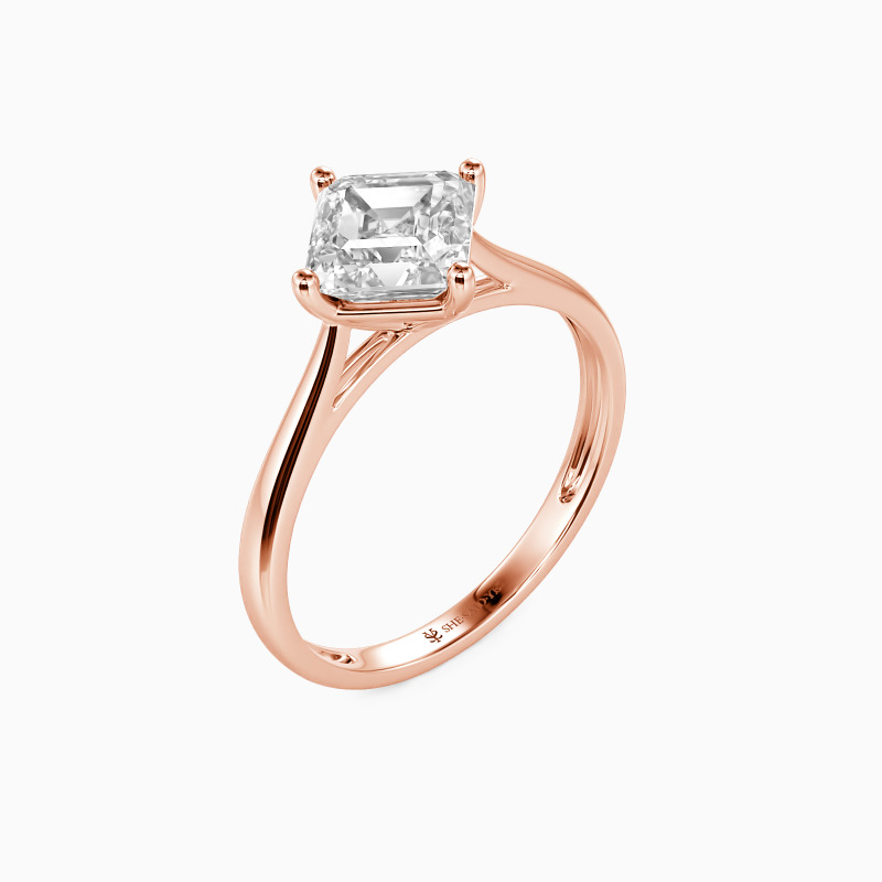 The four-prong setting gives an Asscher-cut stone a classic look and allows more light to contact the stone, enhancing its brilliance. Give this ring to your beloved one to promise to be with her forever.