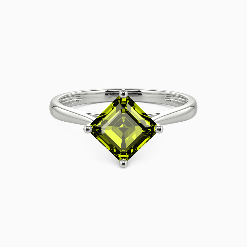 The four-prong setting gives an Asscher-cut stone a classic look and allows more light to contact the stone, enhancing its brilliance. Give this ring to your beloved one to promise to be with her forever.