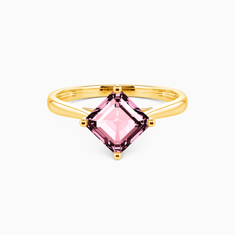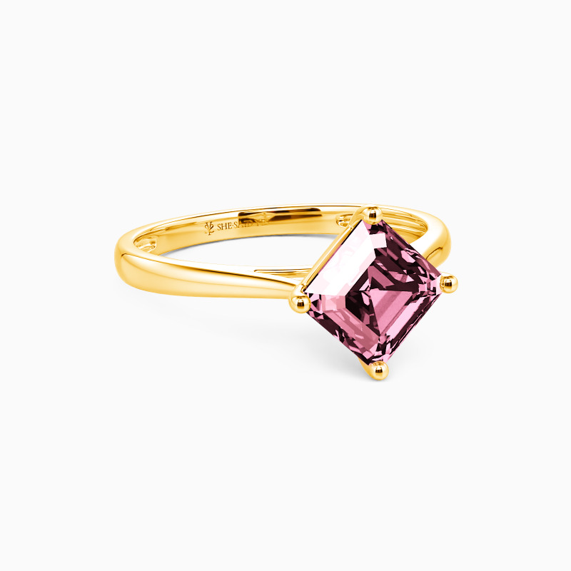 The four-prong setting gives an Asscher-cut stone a classic look and allows more light to contact the stone, enhancing its brilliance. Give this ring to your beloved one to promise to be with her forever.