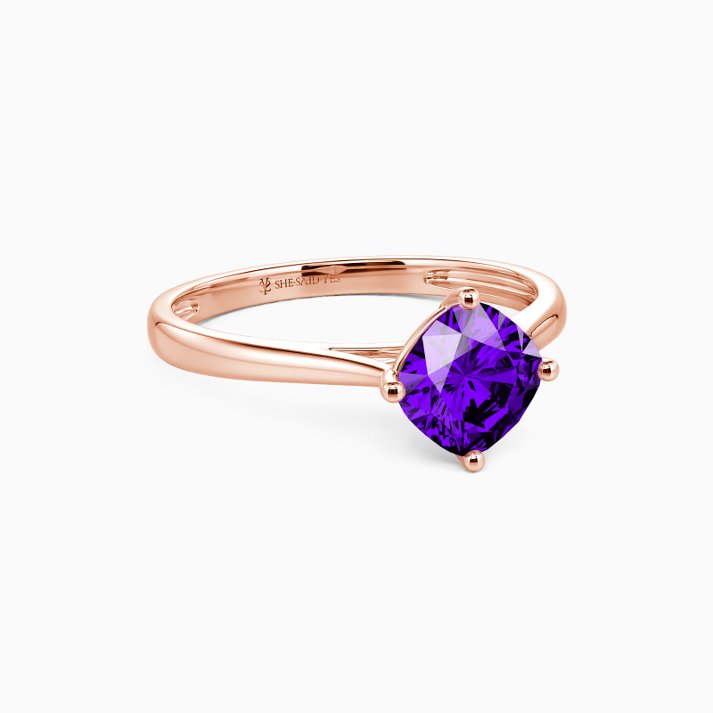 The four-prong setting gives a cushion-cut stone a fairly square look and allows more light to contact the stone, enhancing its brilliance. Give this ring to your beloved one to promise to be with her forever.