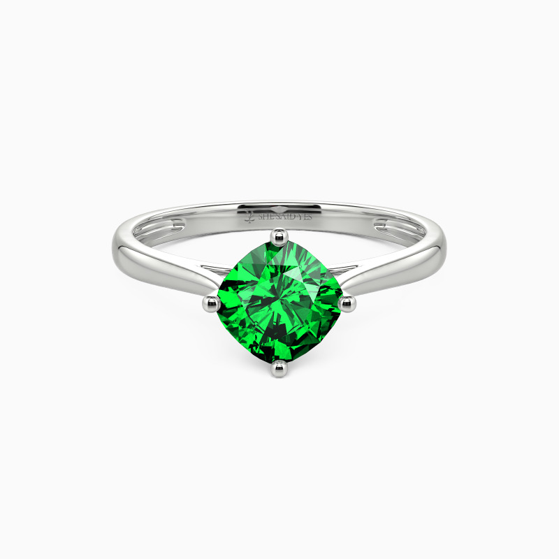 The four-prong setting gives a cushion-cut stone a fairly square look and allows more light to contact the stone, enhancing its brilliance. Give this ring to your beloved one to promise to be with her forever.
