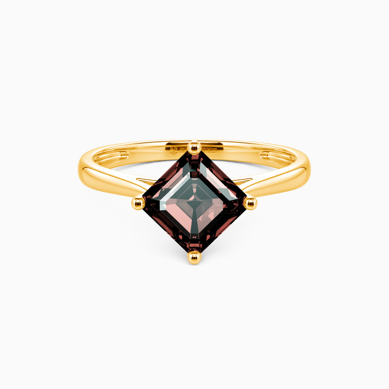 The four-prong setting gives an Asscher-cut stone a classic look and allows more light to contact the stone, enhancing its brilliance. Give this ring to your beloved one to promise to be with her forever.