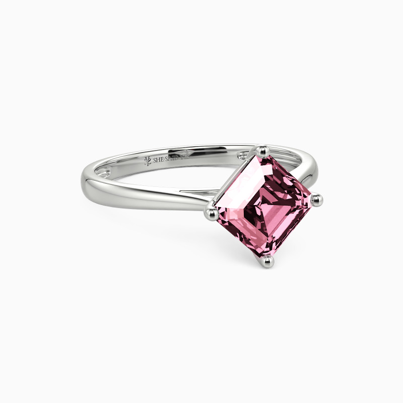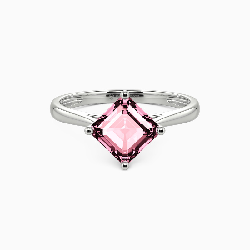 The four-prong setting gives an Asscher-cut stone a classic look and allows more light to contact the stone, enhancing its brilliance. Give this ring to your beloved one to promise to be with her forever.