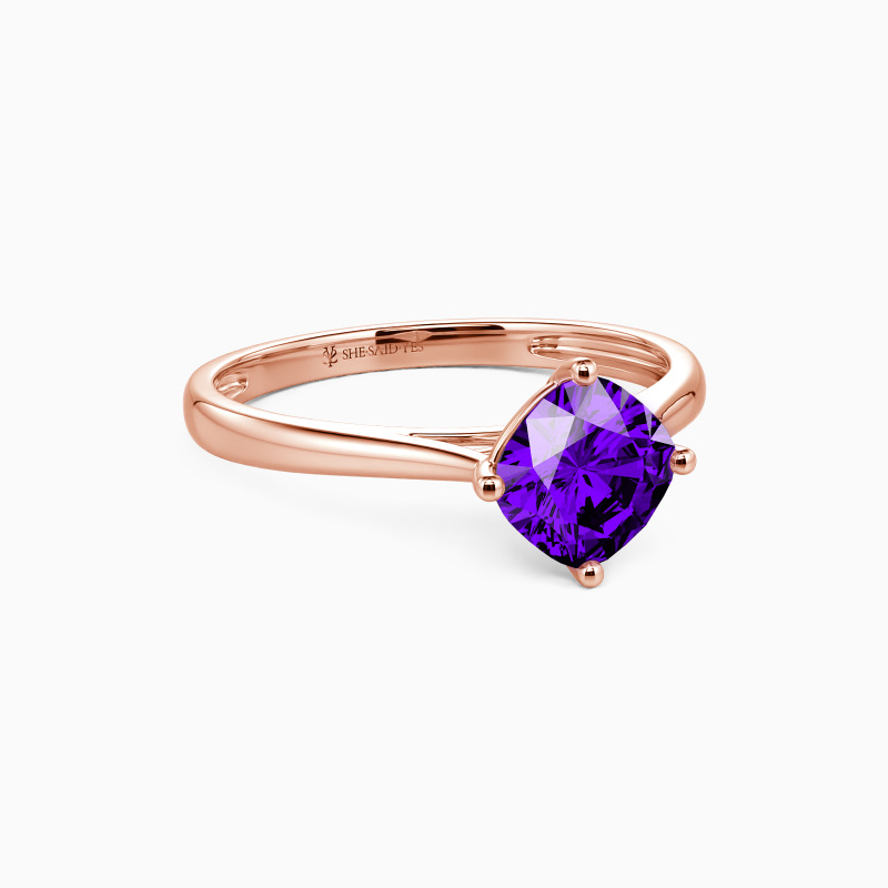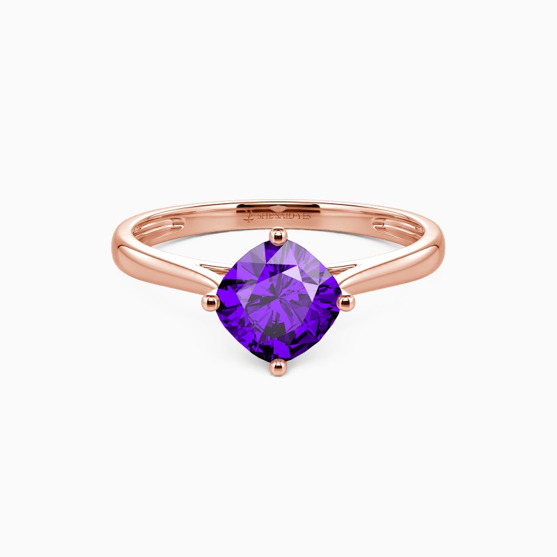 The four-prong setting gives a cushion-cut stone a fairly square look and allows more light to contact the stone, enhancing its brilliance. Give this ring to your beloved one to promise to be with her forever.