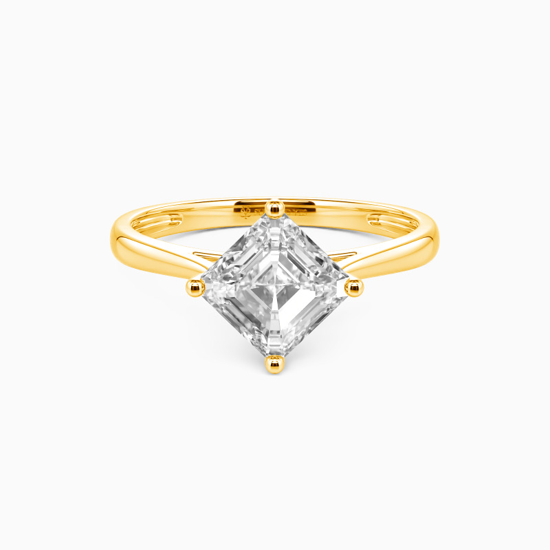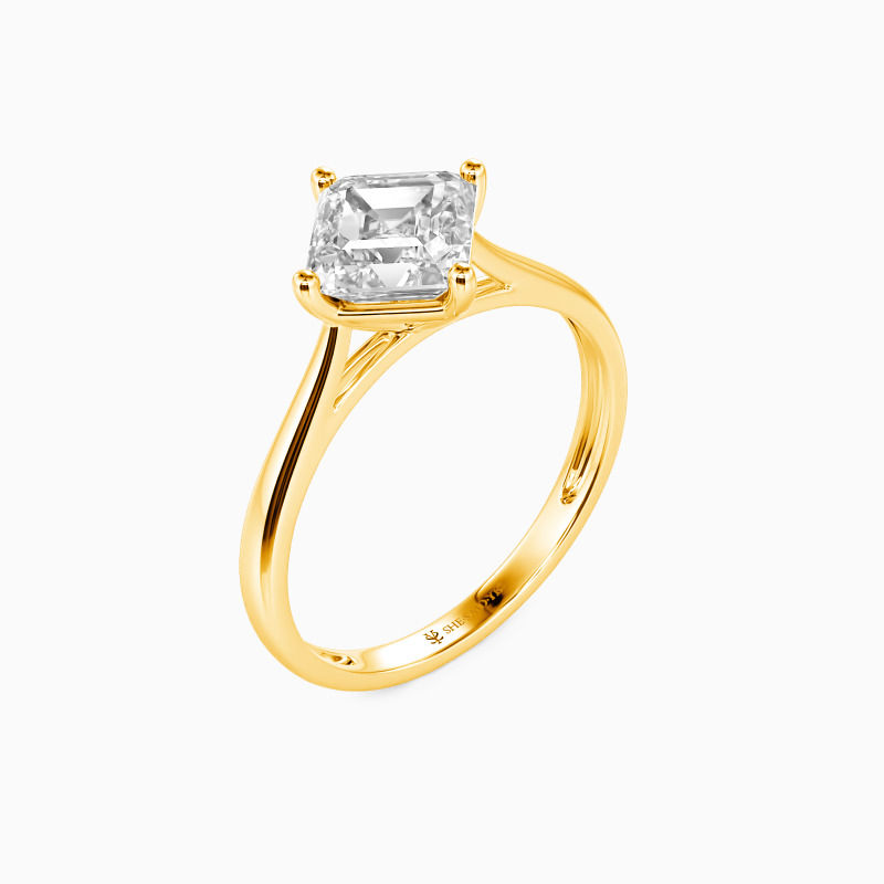 The four-prong setting gives an Asscher-cut stone a classic look and allows more light to contact the stone, enhancing its brilliance. Give this ring to your beloved one to promise to be with her forever.