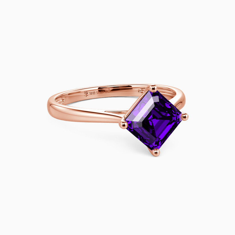 The four-prong setting gives an Asscher-cut stone a classic look and allows more light to contact the stone, enhancing its brilliance. Give this ring to your beloved one to promise to be with her forever.