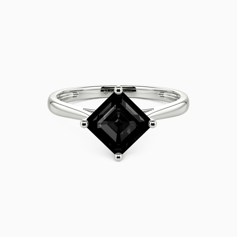 The four-prong setting gives an Asscher-cut stone a classic look and allows more light to contact the stone, enhancing its brilliance. Give this ring to your beloved one to promise to be with her forever.