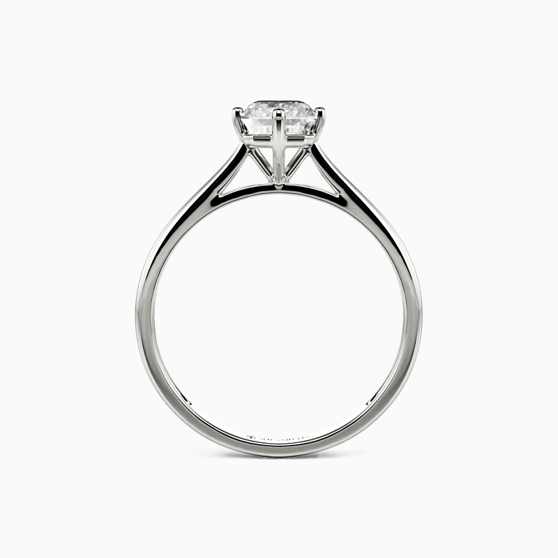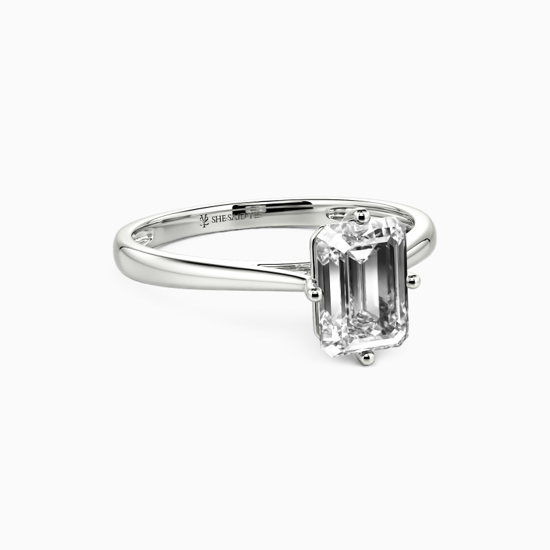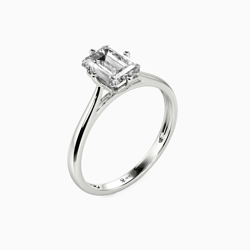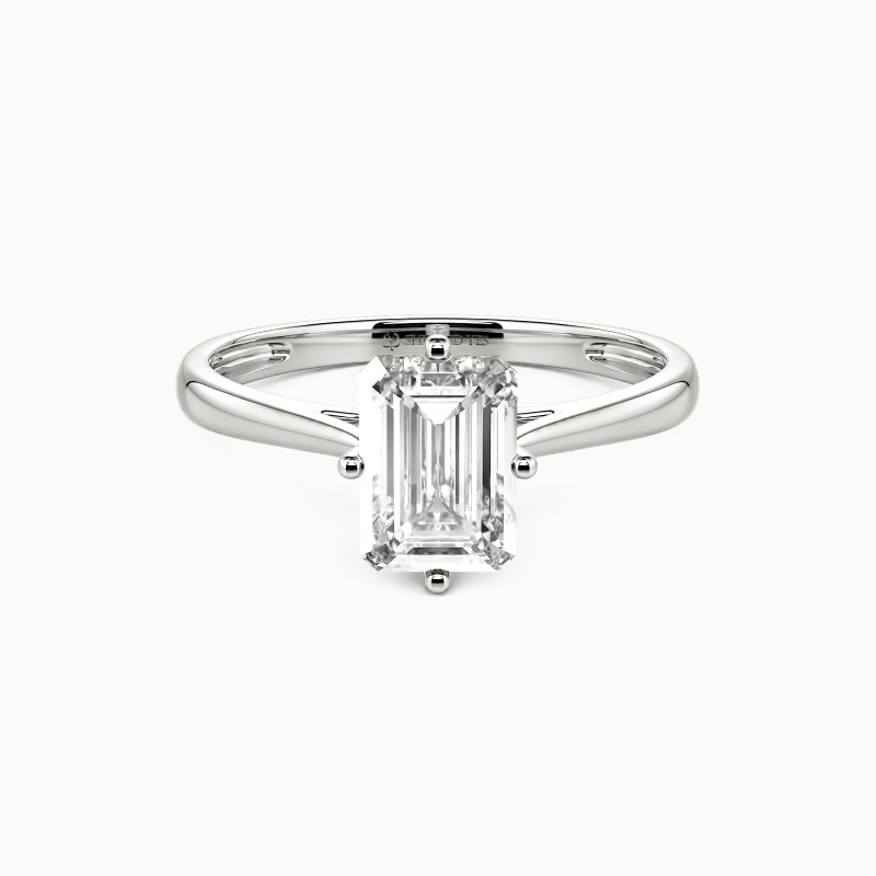 The four-prong setting gives an emerald-cut stone a classic look and allows more light to contact the stone, enhancing its brilliance. Give this ring to your beloved one to promise to be with her forever.