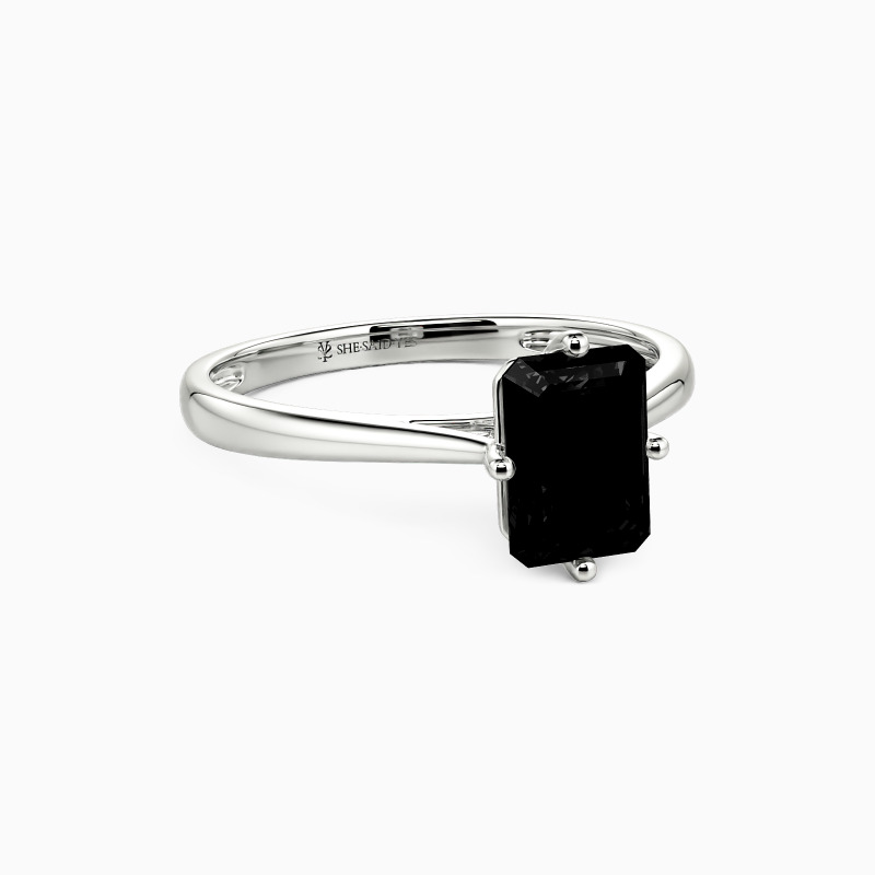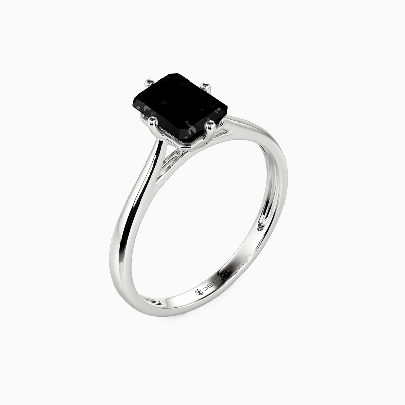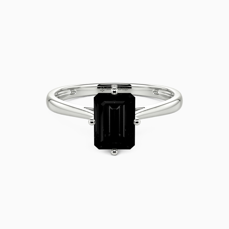 The four-prong setting gives an emerald-cut stone a classic look and allows more light to contact the stone, enhancing its brilliance. Give this ring to your beloved one to promise to be with her forever.