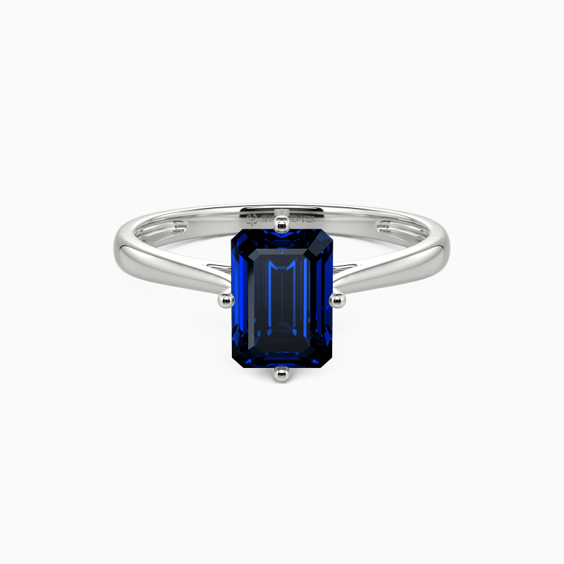The four-prong setting gives an emerald-cut stone a classic look and allows more light to contact the stone, enhancing its brilliance. Give this ring to your beloved one to promise to be with her forever.
