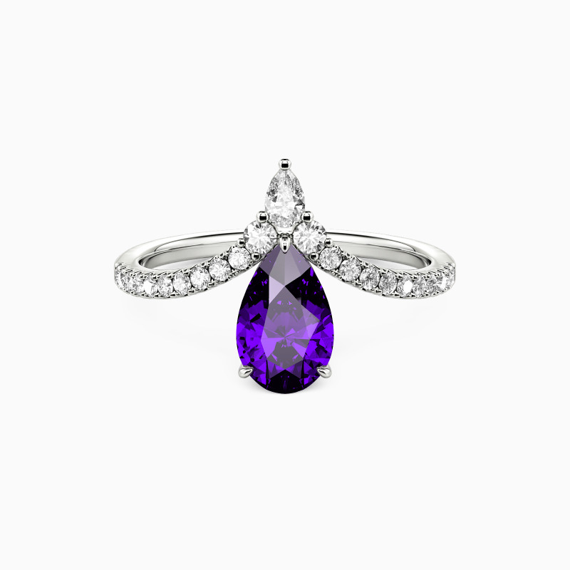 Timeless design and delicate details create this refined engagement ring. It features a sparkling pear-cut stone that stands high on the unique chevron shank. Another small pear-cut gem adorned with numerous sparkling accents on the tip of the shank, echoing the stone's charm. Elegant and divine offers you a classy appeal.