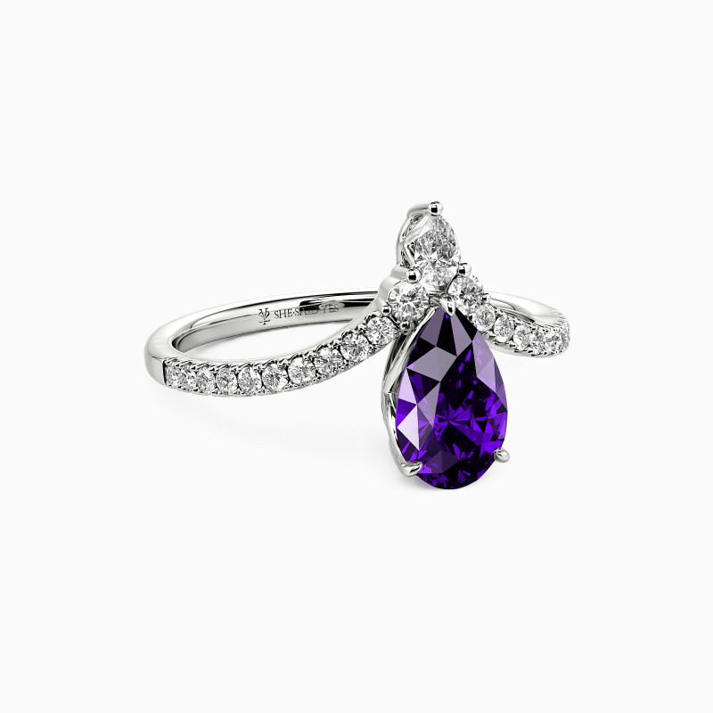 "A Drop Of Memories" Pear Cut Side Stone Engagement Ring
