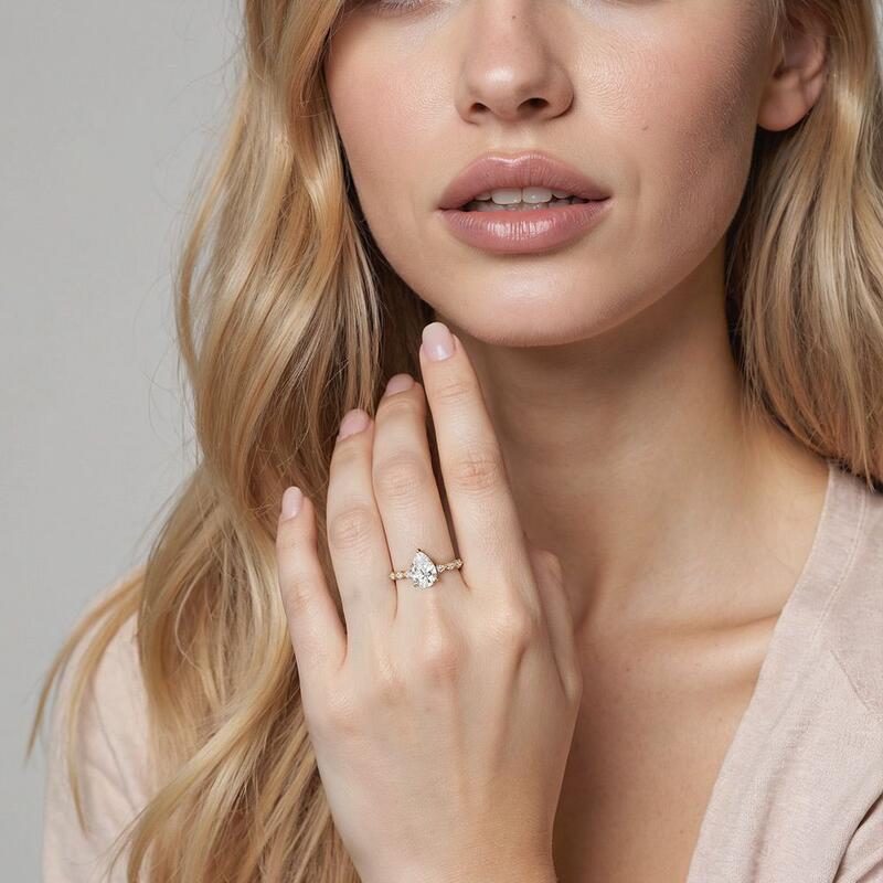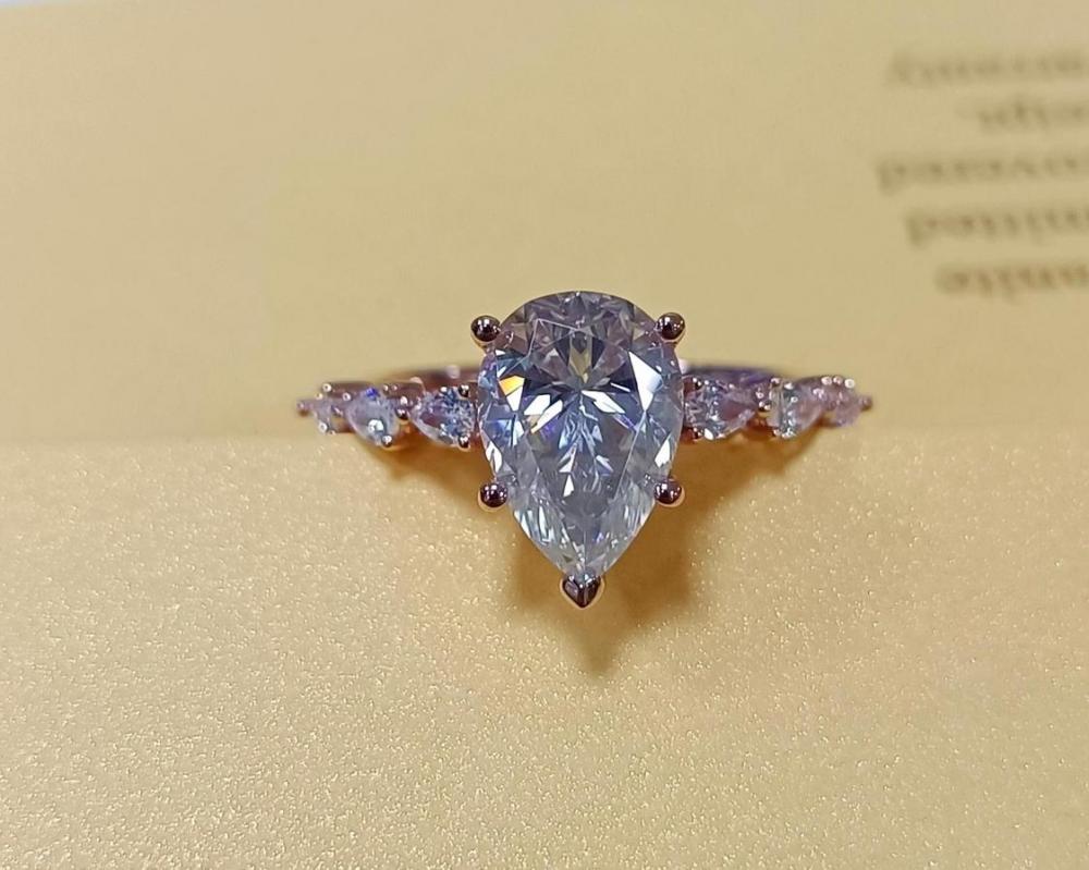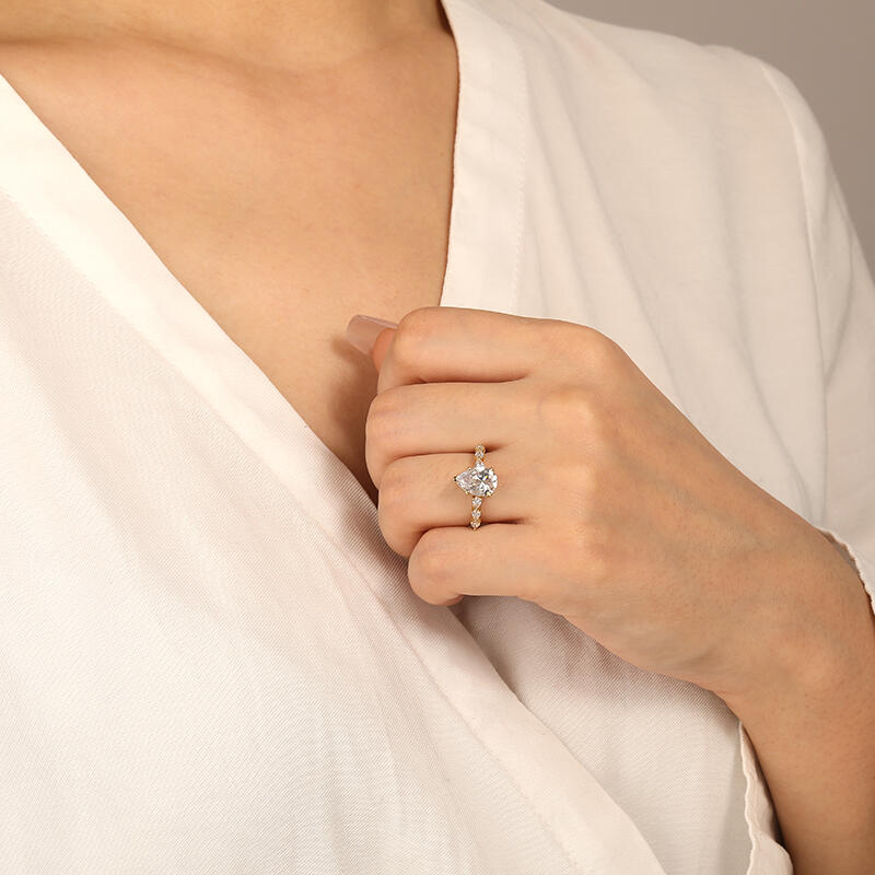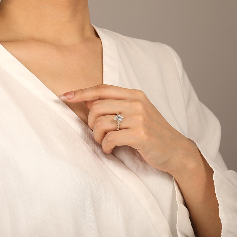 "A Tear-drop of Love" Pear Cut Side Stone Engagement Ring