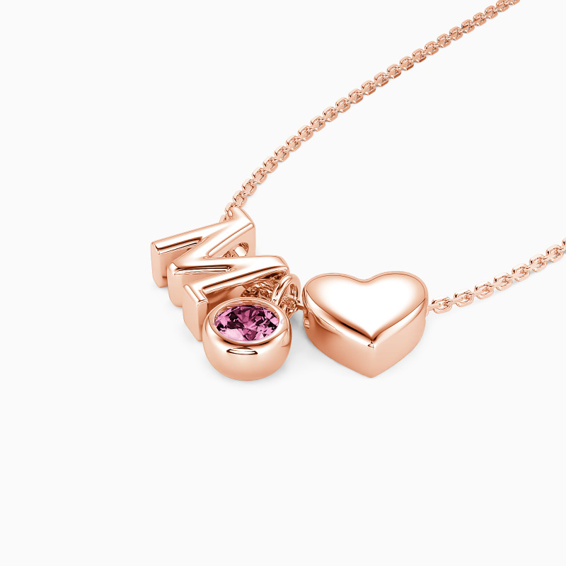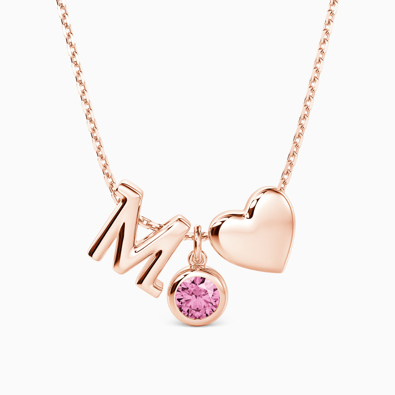 Express your love with this personalized pendant necklace. A round gemstone rests at its center, while a heart shape on one side represents love and a customizable letter on the other for special meaning. Though each element stands individually, they compose a meaningful token to reveal your affection for that unique someone.