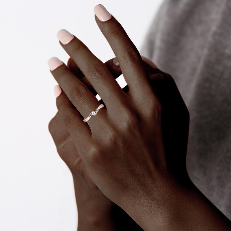 This exquisite wedding band features a delicate branch-inspired bypass shank, artfully intertwined to evoke the organic beauty of nature. Two round gems nestle gracefully within the design, adding a touch of timeless sparkle. The romantic interplay of flowing lines and luminous stones creates a ring that feels both ethereal and enduring—perfect for celebrating love's eternal bond.