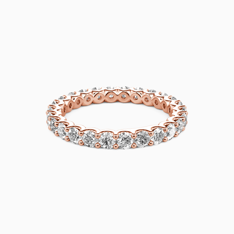 Elevate your jewelry collection with this versatile eternity band. A continuous line of sparkling gemstones encircles the finger, set in a scalloped pavé design that catches light from every angle. Wear it alone as a statement piece, stack it with other rings, or pair it with your engagement ring for a stunning bridal set.
