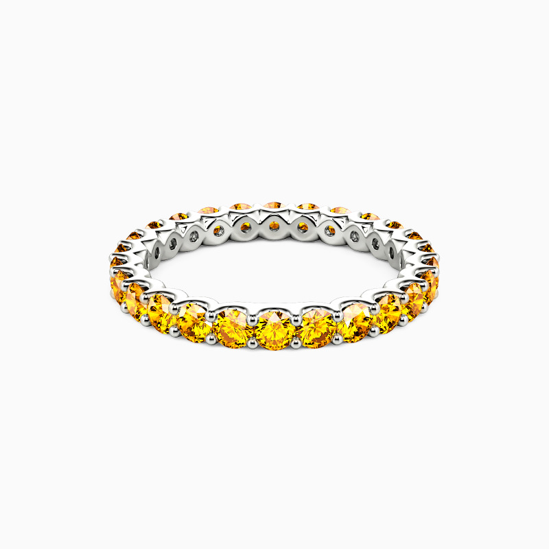 Elevate your jewelry collection with this versatile eternity band. A continuous line of sparkling gemstones encircles the finger, set in a scalloped pavé design that catches light from every angle. Wear it alone as a statement piece, stack it with other rings, or pair it with your engagement ring for a stunning bridal set.