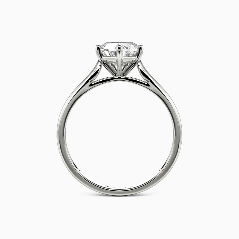 As scripture as it gets. This engagement ring features a Heart cut stone set high above the simple band. The look is very traditional, with clean lines and nothing to distract from the beauty.