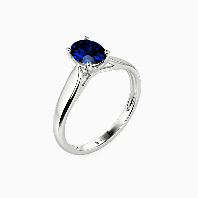 As scripture as it gets. This engagement ring features a Oval cut Stone set high above the simple band. The look is very traditional, with clean lines and nothing to distract from the beauty.