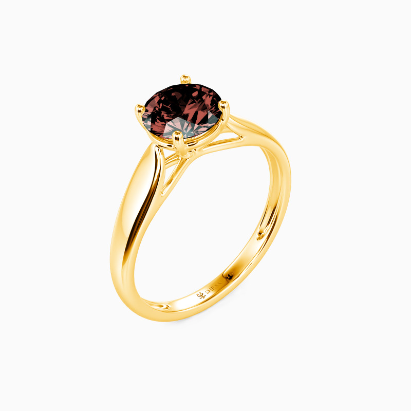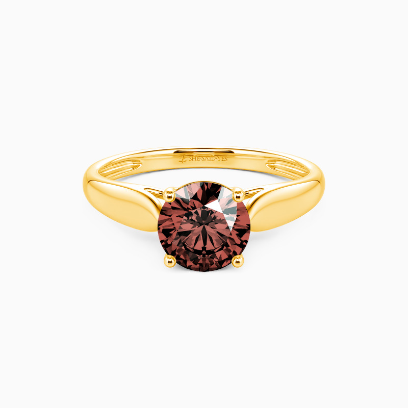 As scripture as it gets. This engagement ring features a Round cut Stone set high above the simple band. The look is very traditional, with clean lines and nothing to distract from the beauty.
