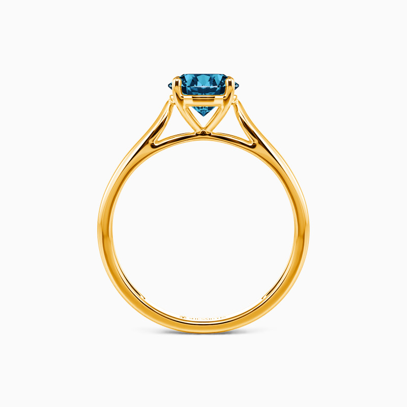 As scripture as it gets. This engagement ring features a Round cut Stone set high above the simple band. The look is very traditional, with clean lines and nothing to distract from the beauty.